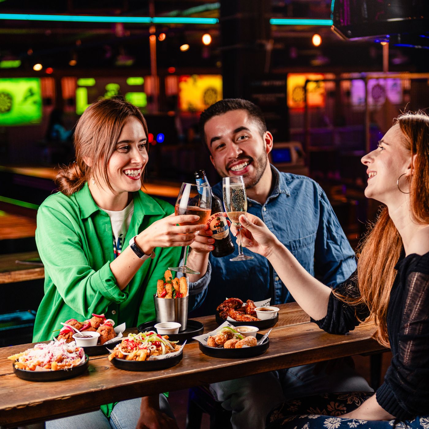Ready to feast like a champion? At BOOM BATTLE BAR, we’re serving up more than just epic games. Our food and drink menu is a full-throttle flavour experience. Whether you’re gearing up for a night of axe-throwing action or celebrating victory at the shuffleboard, our bold bites and signature cocktails are here to fuel the fun.